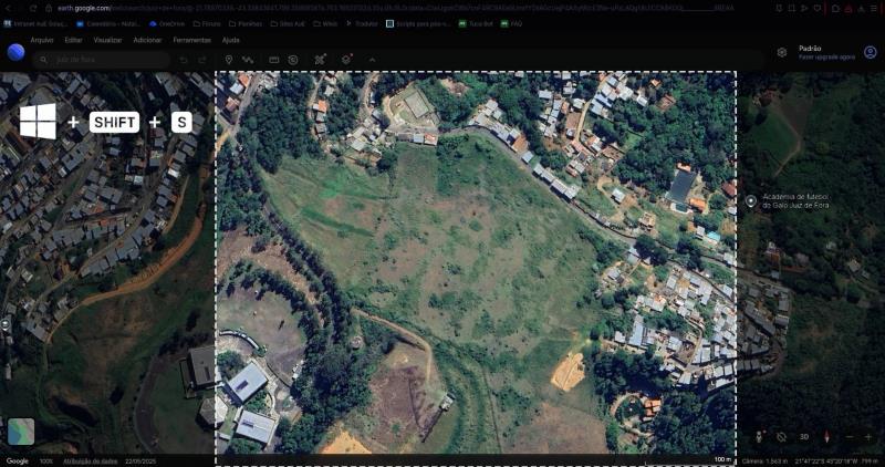 3-Agora vá até o mapa de sua preferência para pegar a imagem de satélite, aqui vamos utilizar o google earth, o importante é que ao tirar o print, você pegue a imagem junto com a escala, para usar de referência lá no CAD.